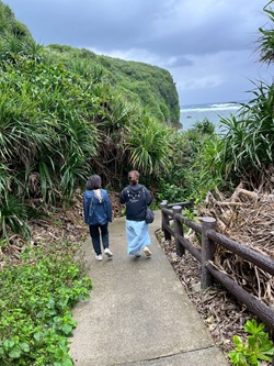 ブログ担当花子です。 お腹いっぱいになった先生一家は 早速再出発 海を見たり 山道を歩いたり… 結構険しい所も…